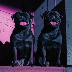 «A pug and his buddy Artemis taken with a Fujifilm X-T3 Fujinon X...»