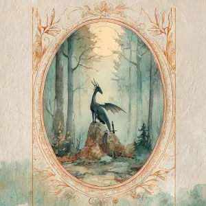 «Prompt: Fine lace-like wings, slim teal body; slight vintage tin...»