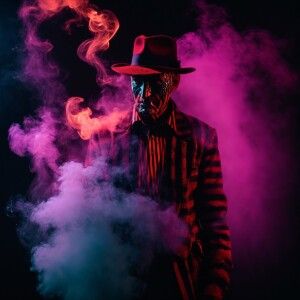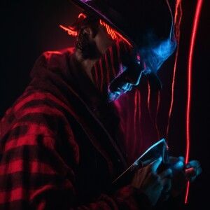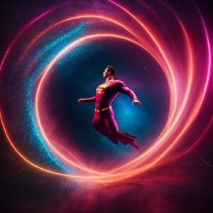 «Create an image of vibrant neon-colored cosmic gases and dust sw...»