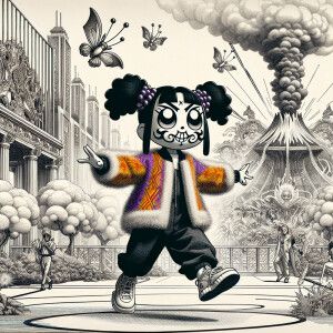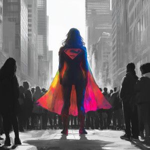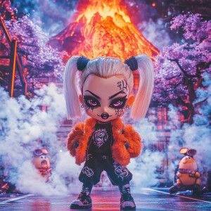 «In the style of TOK, a photo editorial dramatic action pose of a...»