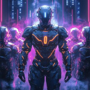 «Create a hyper-realistic concept art piece of a glowing android...»