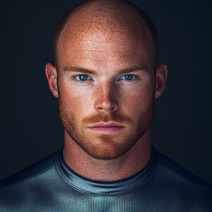 «Create a man aged 24, image of a balding dark brown haired steel...»