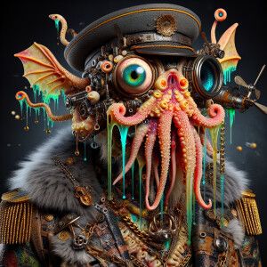 «A creature with a squid-like mouth and pig nose, dripping vibran...»