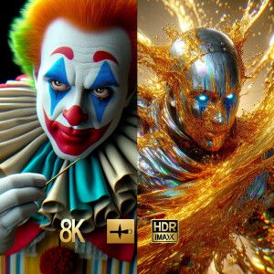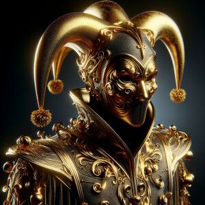 «The Joker wearing armor with gold liquid static paint, 8k resolu...»