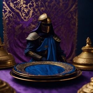 «A knight errant in black with gold details on the plate, cloth i...»