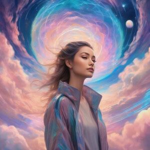 «Nestled amidst the cosmic swirls of ethereal clouds, a celestial...»