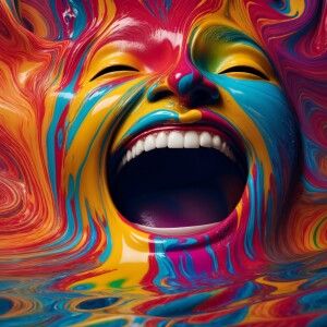 «Create a highly detailed 3D abstract image of a smiling face eme...»