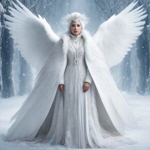 «Create an image of a divine white owl goddess adorned in an eleg...»