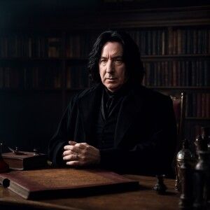 «Create a portrait of Alan Rickman in his iconic role as Severus...»