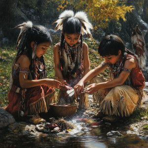 «Create a super realistic picture of Native American children pla...»