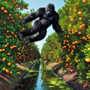 «Generate an image depicting a hairy, Bigfoot-like creature with...»