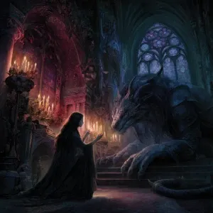 «A dark romantic style artwork, depicting 'Gothic Power & Devotio...»