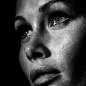 «Ultra realistic big close-up portrait of Ursula Andress, black a...»