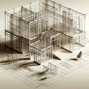 «Create a minimalist 3D wireframe model for the experimental and...»