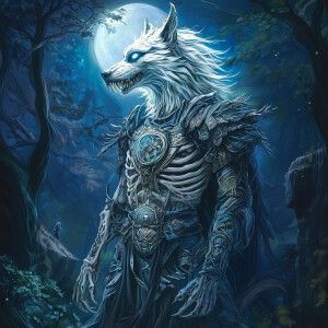 «A Black Wolf seated beside an elegant goddess with the form of a...»
