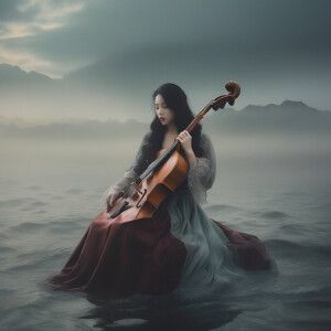 «(woman in the water cradling a pipa), able to see up till her hi...»
