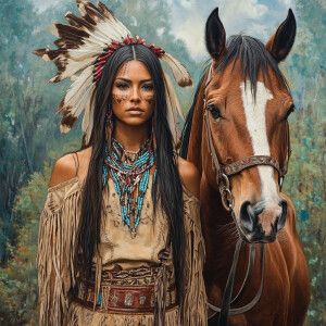 «Create a hyper-realistic detailed image featuring a Native Ameri...»