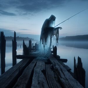 «A weathered, spectral figure in frayed fishermen's attire appear...»