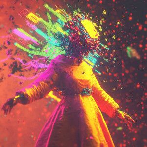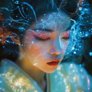 «Capture a futuristic Geisha in a kimono made of quantum threads...»