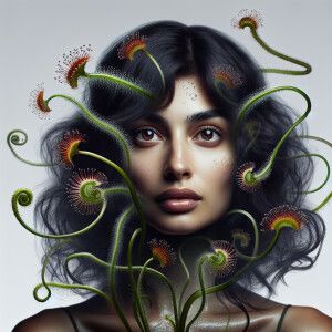 «Cabeza de mujer mezclada con planta carnivora Drosera»