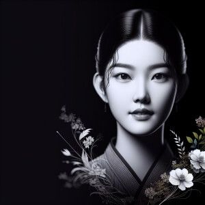 «Create an image of a skull entwined with vibrant flowers, from w...»