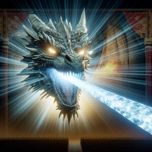 «Design a hyper-realistic dragon exhaling a luminous beam from it...»