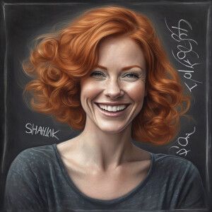 «Photorealistic image. . Ginger haired woman. Word ‘ Shakalaka’...»