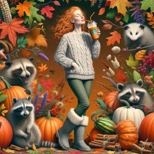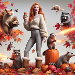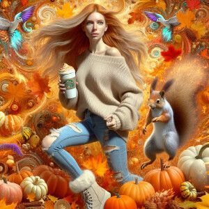 «Photorealistic image. Gingerhaired female, pale skin, autumn. He...»