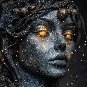 «Create an ultra-realistic bust portrait of a cosmic witch, captu...»