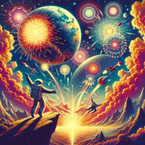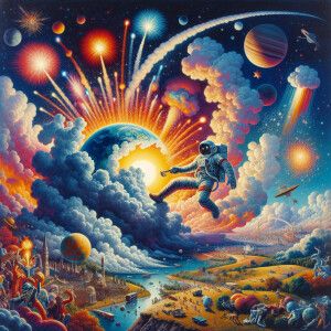«A unreal view of earth as a peice of debris from a explosion in...»