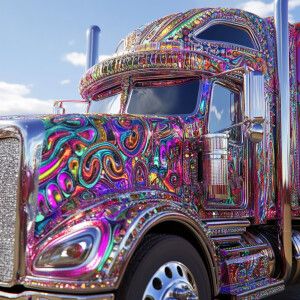 «A semi 🚛 with the front being a skull with lots of color's 3D h...»