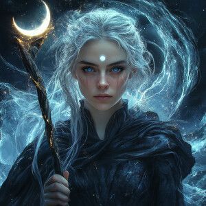 «Selene.m, witch of Lunar Faces. Create a hyperrealistic digital...»