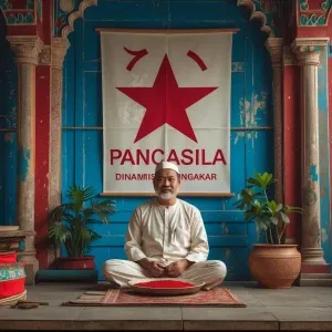 «buatkan gambar poster tentang pancasila idiologiku, dinamis dan...»