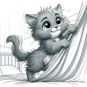 «Generate an image of a playful gray kitten with fluffy fur and b...»