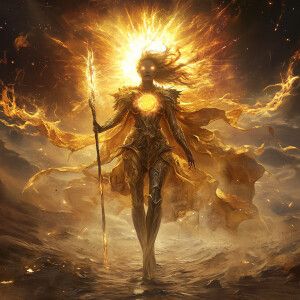 «Hyperrealistic, cinematic digital art of Solara, Witch of Solar...»