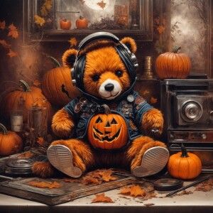 «oil sketch art small teddy bear wearing Hiphop style clothing wi...»