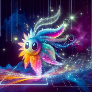 «A vibrant landscape with stars blending into whimsical shadows,...»