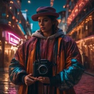 «Cyberpunk portrait of a woman, neon-lit mandala glowing in a bio...»