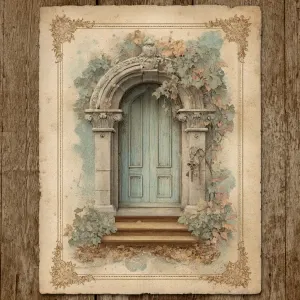 «Print-ready junk journal page, A4 portrait, 300 DPI. Watercolor-...»