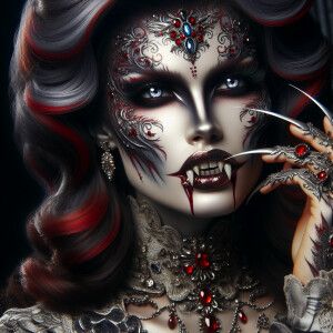 «finely detailed demonic vampiress with glowing shiny silver skin...»