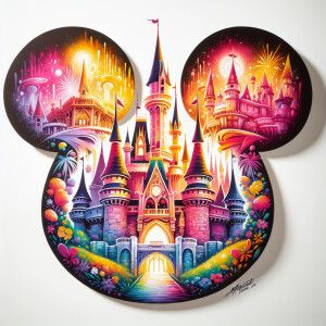 «vividly detailed airbrush art A silhouette of Mickey Mouse ears...»