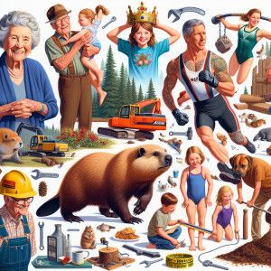 «Cartoon of Silver squirrels with human faces playing in Rick ban...»