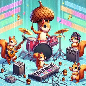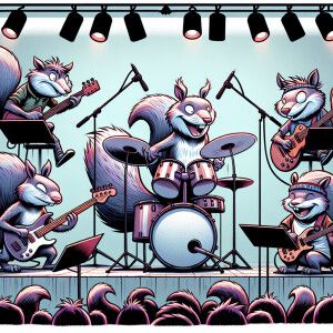 «A cartoon of band of squirrels playing in rock band in the metav...»