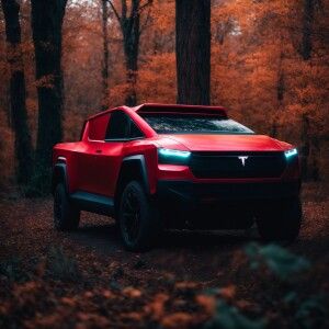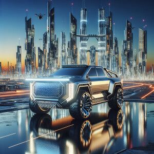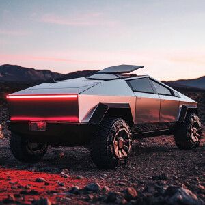 «Design a futuristic Cybertruck with clean, angular lines, a stai...»