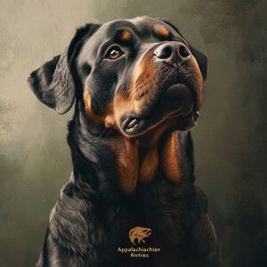 «Create an image of a noble Rottweiler dog with a visible, brande...»