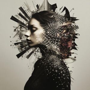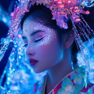 «Capture a futuristic Geisha in a kimono made of quantum threads...»