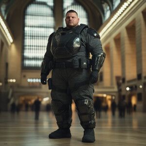 «Create a photorealistic body portrait of Ben Rhodes, a fat obese...»