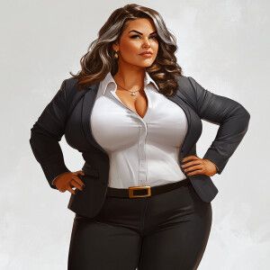 «Craft an image of a sophisticated, large curvy woman with sculpt...»