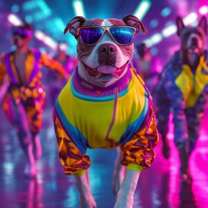 «"Pitbulls modeling athletic sportswear on a runway, showcasing a...»