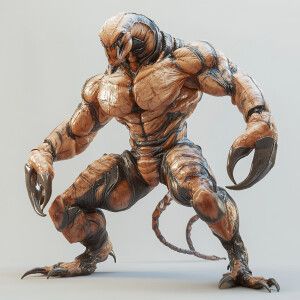 «Design a hyper-detailed 3D rendering of a muscular, anthropomorp...»